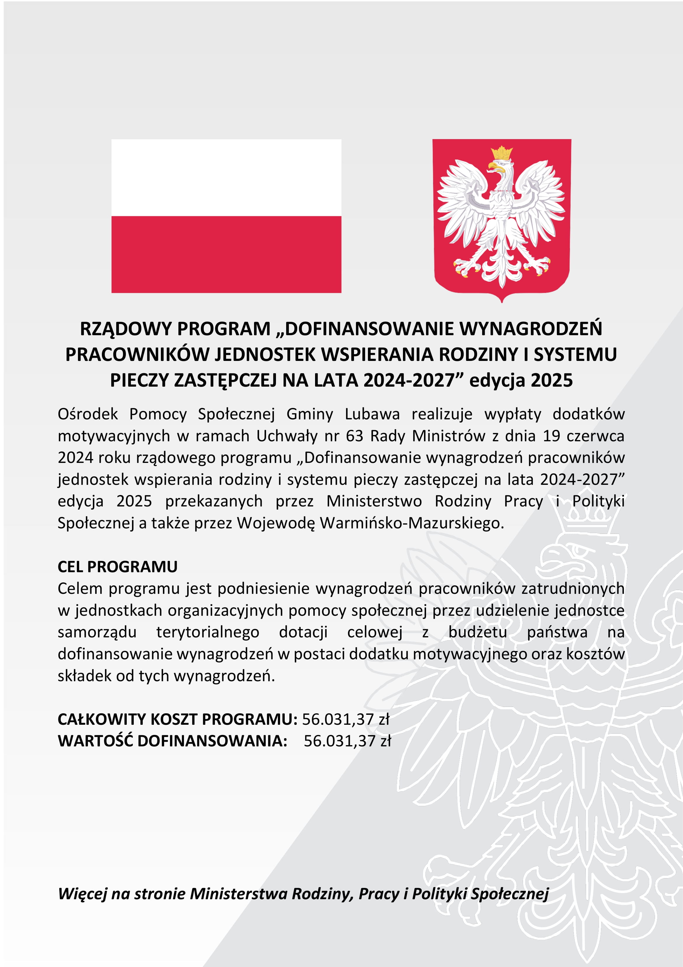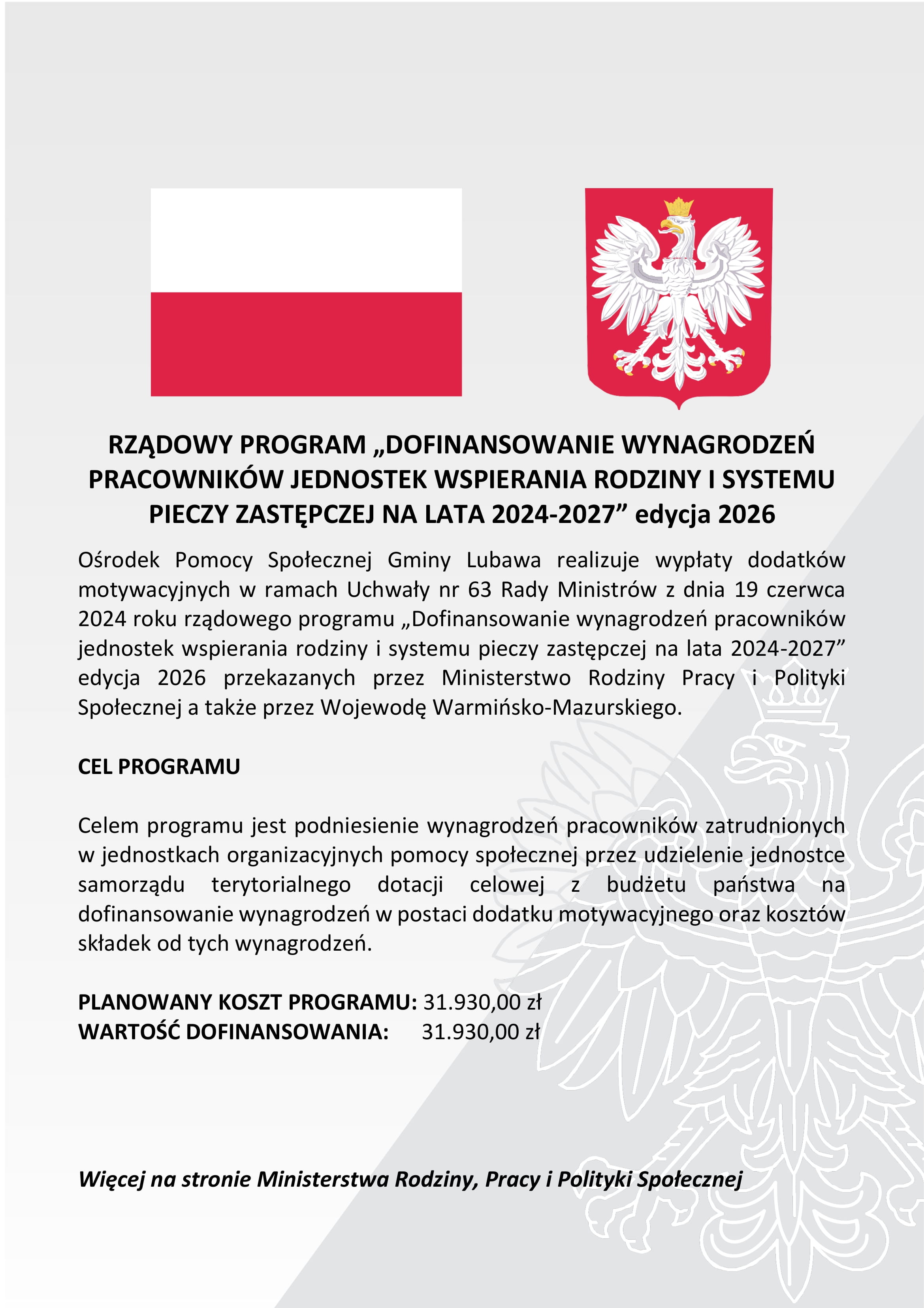 - Dofinansowanie wynagrodzeń pracowników jednostek wspierania rodziny i systemu pieczy zastępczej na lata 2024-2027