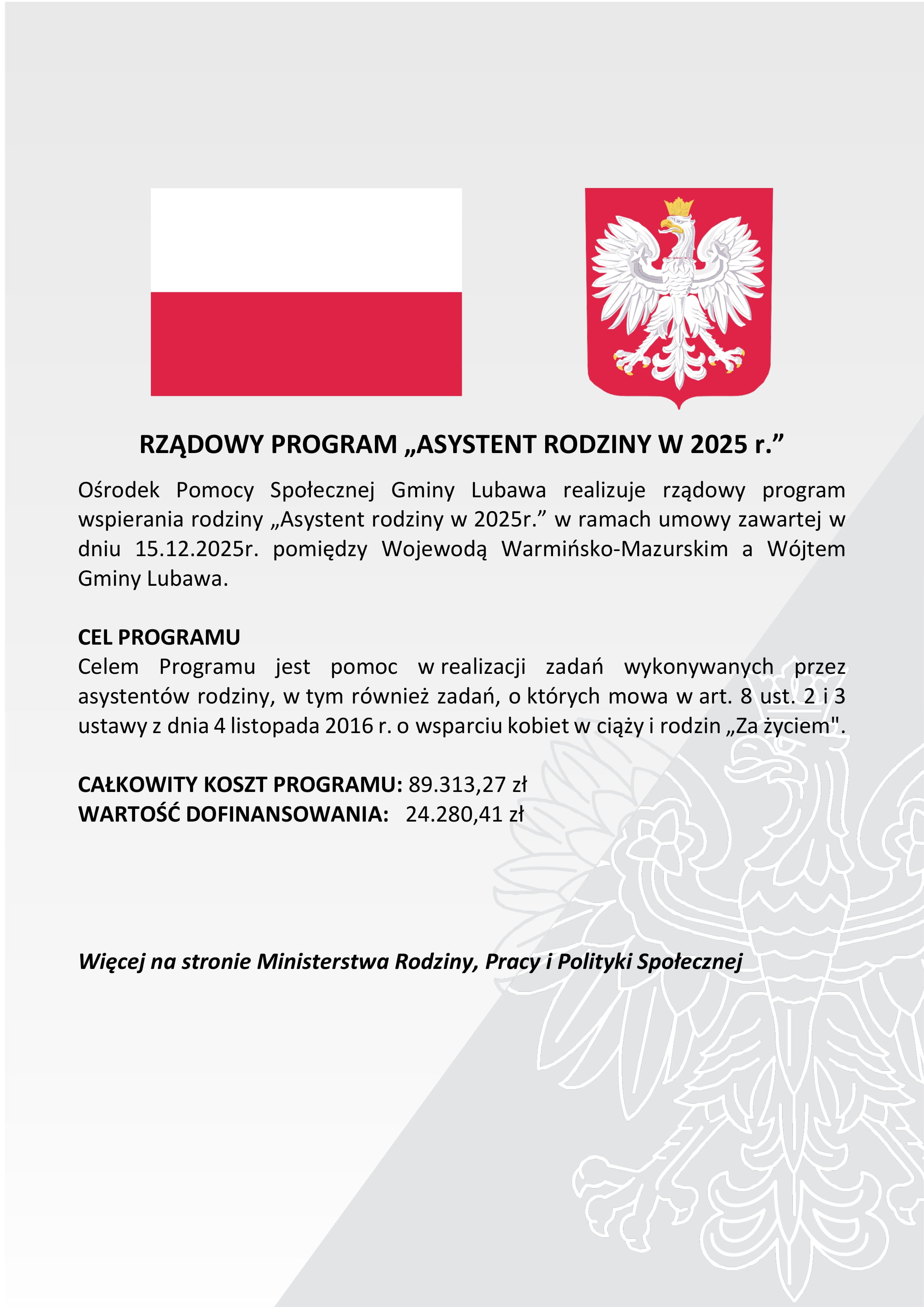 RZĄDOWY PROGRAM WSPIERANIA RODZINY „ASYSTENT RODZINY W 2025 R.”